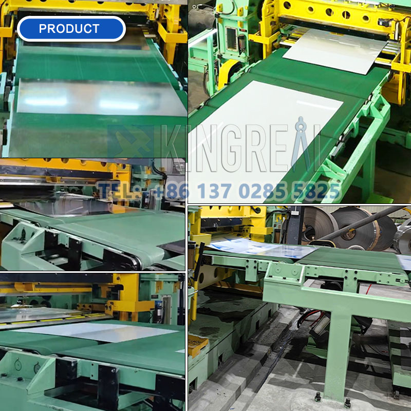 किंगरियल स्टील स्लिटर फुल ऑटो कट टू लेंथ लाइन विभिन्न सामग्री के कॉइल को आवश्यक शीट में काटने और प्रोफाइल को स्टैक करने के लिए डिज़ाइन किया गया है, जिसमें मुख्य रूप से डिकॉयलर, क्लैंप लेवलर, कटर, स्टेकर इत्यादि शामिल हैं, और फीडर, साइड गाइड डिवाइस, ट्रांज़िशन डिवाइस, कन्वेयर इत्यादि जैसे सहायक उपकरणों से लैस है।